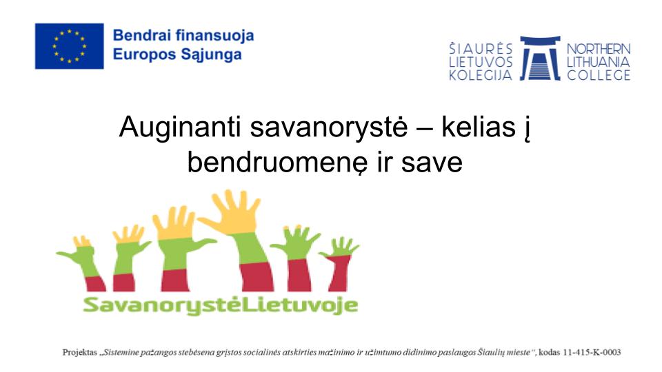 2025 m. spalio 27 d. ir lapkričio 18 d. įvyko 12 val. praktiniai mokymai „Renkuosi auginančią savanorystę“. Juose dalyvavo 13 projekto dalyvių, pareiškusių norą įsitraukti į savanorišką veiklą. Po mokymų visi 13 dalyvių pasirašė savanoriško darbo sutartis, įtvirtindami savo siekį įsitraukti į savanorišką veiklą. Vienas savanoris 2025-12-17 įsidarbino, liko 12 dalyvių-savanorių.
